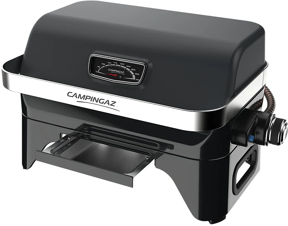 Attitude 2go brings barbecue pleasures to all who want to stay flexible! This table top barbecue pairs sleek, urban styling with pioneering precision cooking, all within a compact, portable package. Intuitively designed for effortless barbecuing, it benefits from perfectly even heat distribution thanks to the powerful stainless steel burner. Key product features: Pre-assembled table top grill - no screwdriver required! Front loading grease tray is dishwasher safe, which ensures quick and simple cleaning. Elegantly matte black die cast aluminium lid retains heat and ensures convection grilling. Includes hose and regulator with Easy Clic Plus connection for use with Campingaz CV470 Plus cartridges. 10 year warranty on the die cast aluminium lid and 5 year warranty on the enamelled cast iron cooking grids.